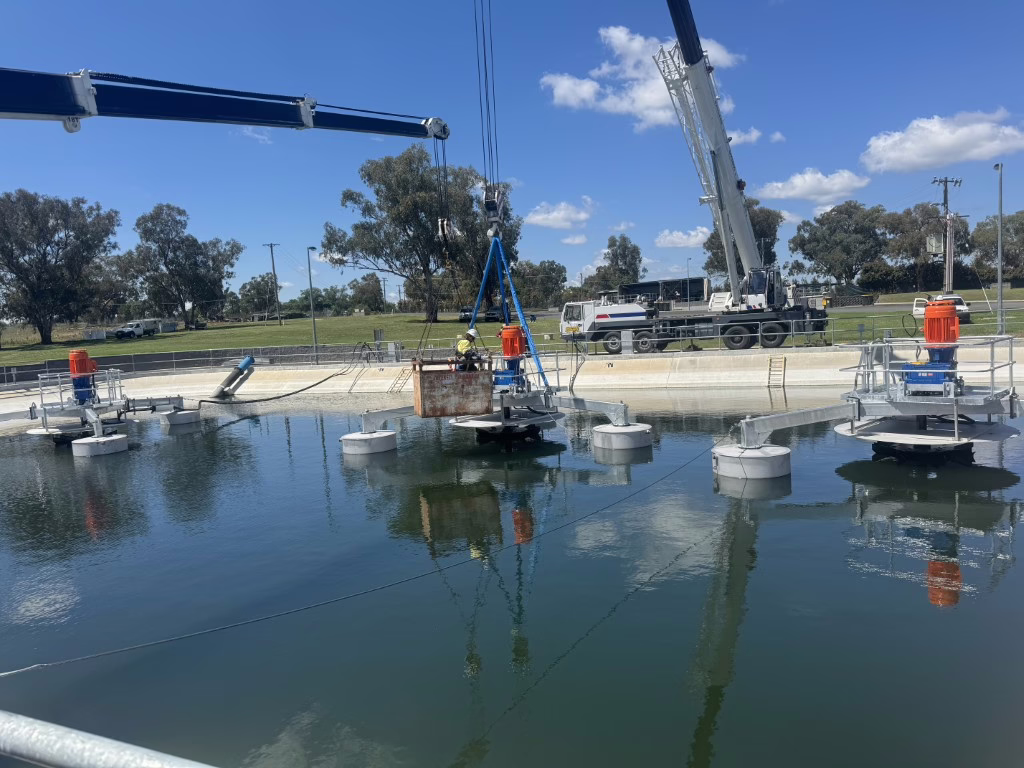GEMS assembled and installed six new aerators at the Inverell Sewage Treatment Plant, completing the first stage safely and on time while improving treatment efficiency and supporting essential regional infrastructure.